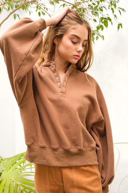Stay comfortable and chic with this Everyday Pullover that features a snap-buttoned collared sweat shirt and a washed effect for a relaxed fit that'll have you looking effortlessly cool. Get ready to hug yourself with this comfy must-have!