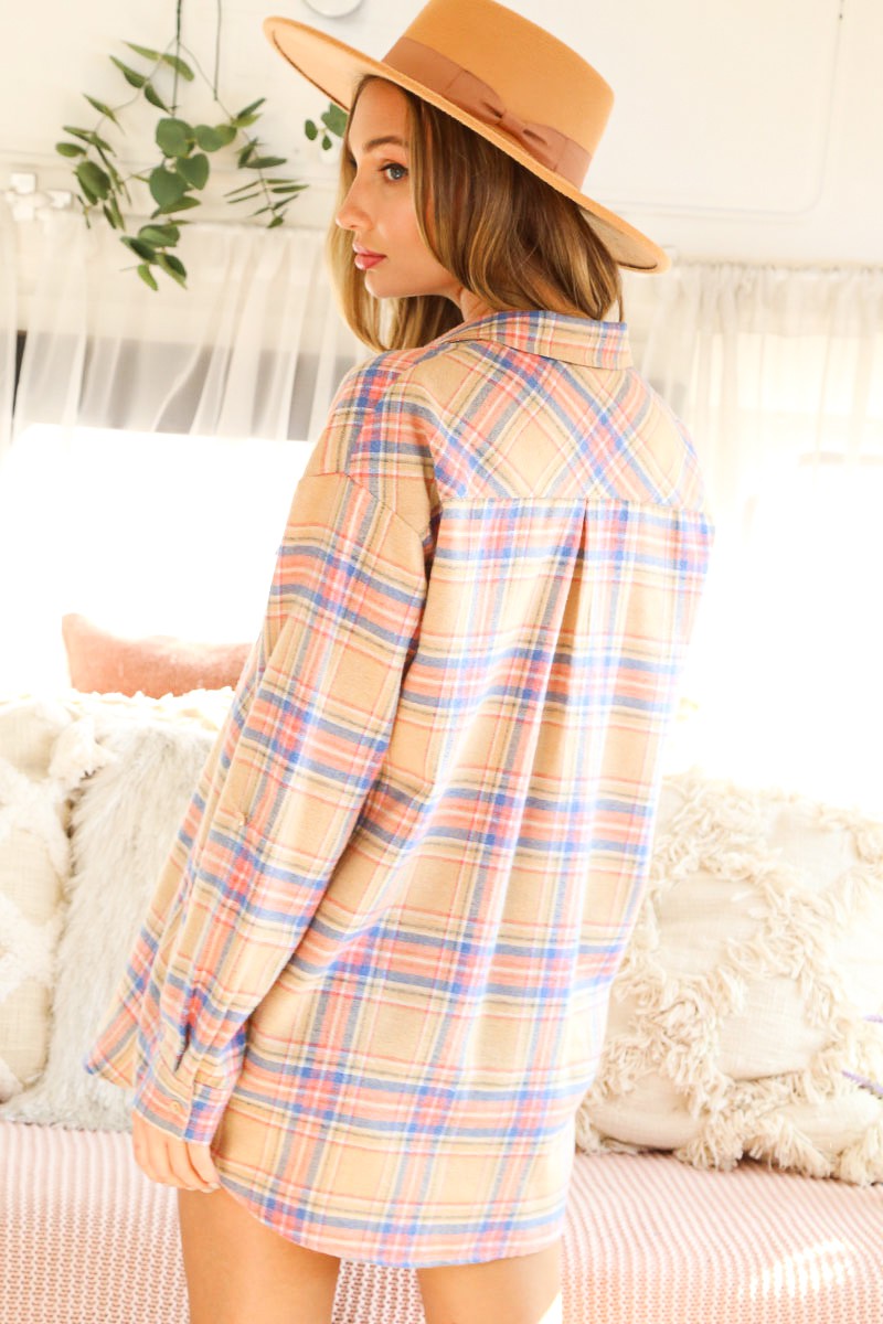 Stay warm and stylish with our Fall Nights Flannel. Wear it as an oversized shacket or alone as a comfy shirt. It features a classic plaid print and long sleeve pocket detail for a timeless look. Keep cozy and look great all season long!